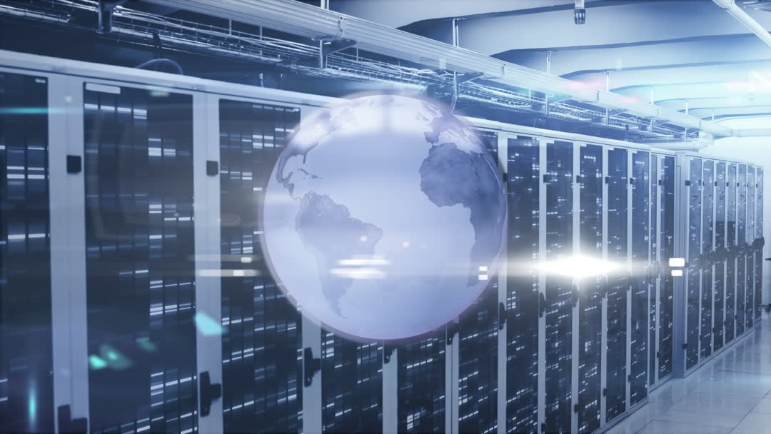 This video illustrates a data center integrated with global network concepts. Ideal for showcasing technology, digital innovation, IT infrastructure, or global communication themes. Suitable for tech-oriented websites, cybersecurity companies, or educational materials discussing future technology and data management.