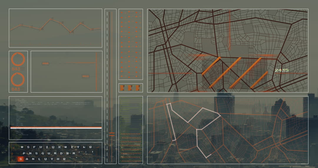 - Futuristic Data Interface Overlaid on Urban Cityscape