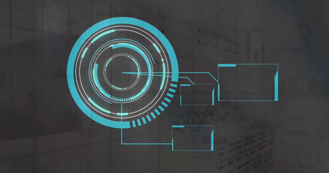Abstract depiction of a futuristic data interface with animated circles representing scanning and processing concepts. Ideal for tech visualizations, innovation materials, presentations on networking, cyber systems, or digital business interfaces. Perfect for web or digital publications focusing on technology trends.
