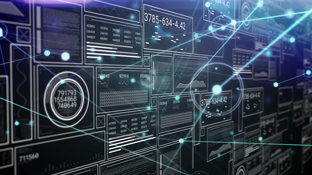 This conceptual video showcases a futuristic grid of data displays, each filled with complex information patterns, numbers, and graphs. Limned with pulsing connections, it weaves a dynamic visual narrative of interconnected networks and processing data flows. Frequently used in presentations or digital content describing innovative tech solutions, big data analysis, network systems architecture, and series chronicles. Suitable for illustrating themes related to technological intelligence, digital transformation, and forward-looking connectivity in education or industry-tech campaigns.