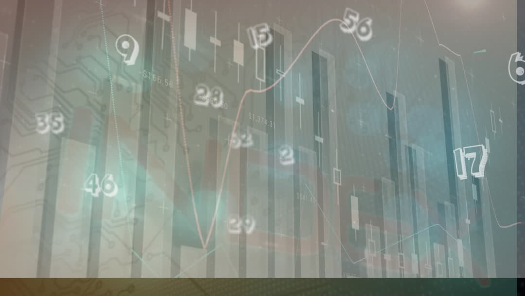This abstract visualization features a blend of statistical data processing and microprocessor integration on a grey background. Perfect for themes around technology, business analytics, and digital transformation, this video provides a dynamic visual context for presentations, reports, and marketing materials focusing on data-driven technology and financial analysis.