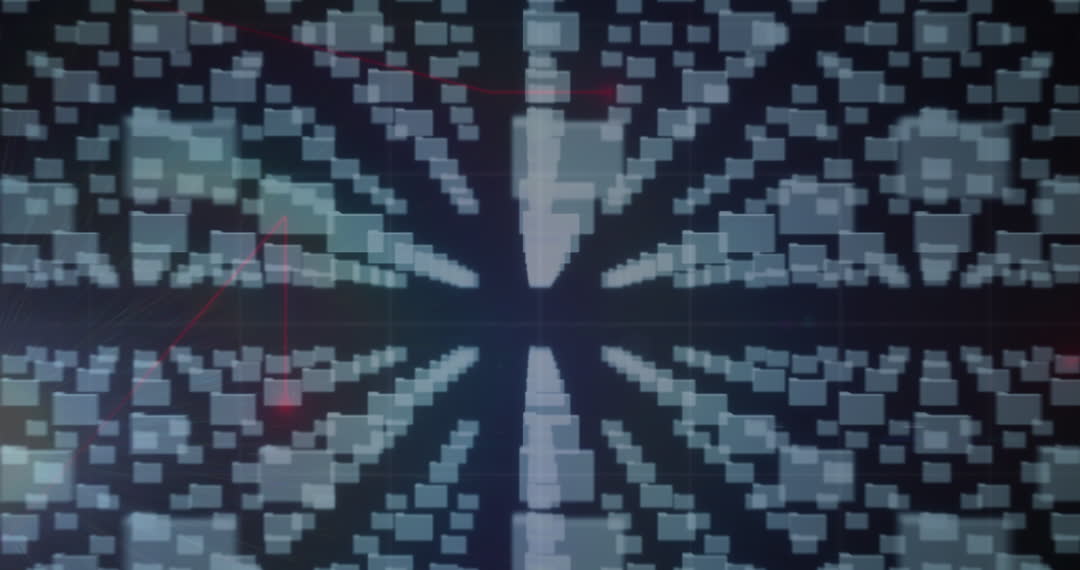 Animated digital displays depict futuristic data processing and online security concepts. Digital files, circuit board elements, and security icons converge in an abstract representation of information technology. Ideal for use in technology blogs, cyber security presentations, and digital conferences focusing on data innovation.