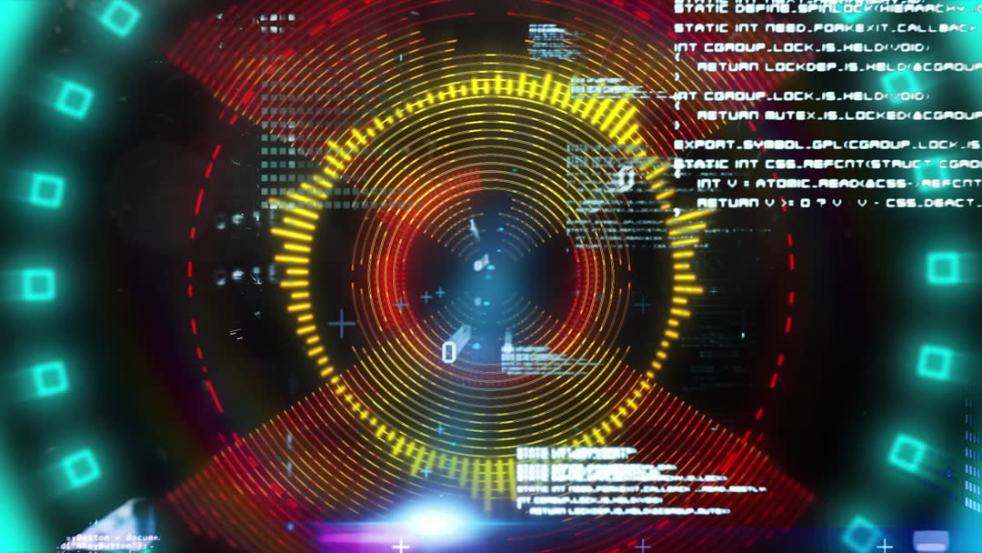Circular neon interfaces with digital data make this perfect for illustrating concepts of technology, cyber security, and data analytics. Suitable for presentations, tech demos, or educational material on digital transformation.