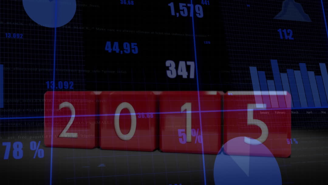Cubes displaying the year 2015 are overlaid with data processing graphics, suggesting a blend of traditional and digital worlds. Ideal for projects focusing on technological advancements in 2015 or analyzing historical data trends from this period. Can be used in presentations about the progression of technology or digital transformation case studies.