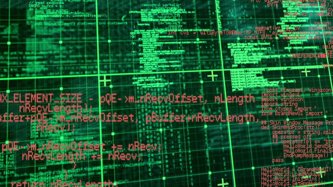 The animation depicts data processing over a digital grid interface, ideal for concepts in computing, cybersecurity, or coding. The mix of text and visuals conveys a futuristic and tech-savvy atmosphere, suitable for use in advertising technology, explaining digital transformation, or illustrating software development. Great for backgrounds or presentations focusing on intricate on-screen high-tech processes.