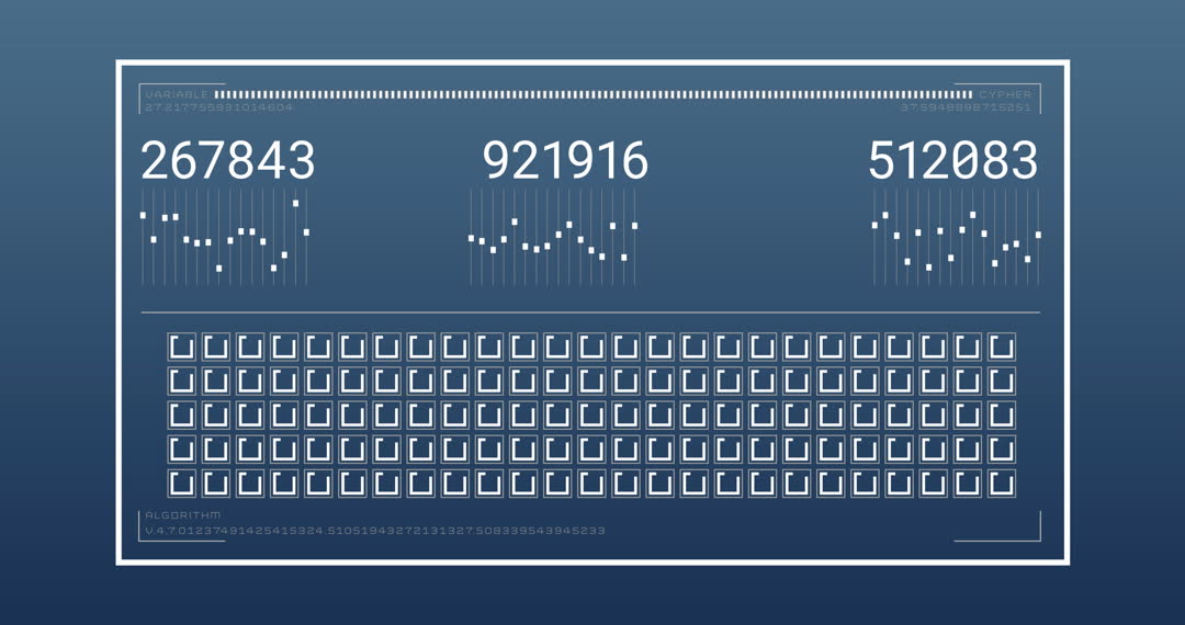 Illustrates a futuristic digital display featuring data processing visuals. Cyan background enhances modern technology vibe. Useful for tech articles, presentations on global finance, computing, and data analysis themes.