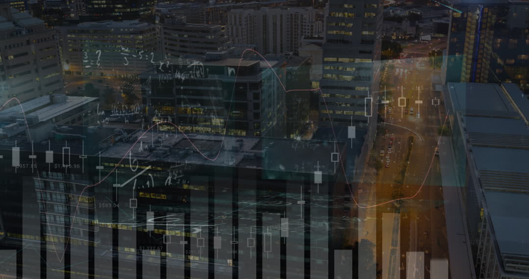 Blend of city at night with digital charts overlaid conveys technological advancements in urban settings. Ideal for topics focused on data analytics, smart city technology, and futuristic urban planning.
