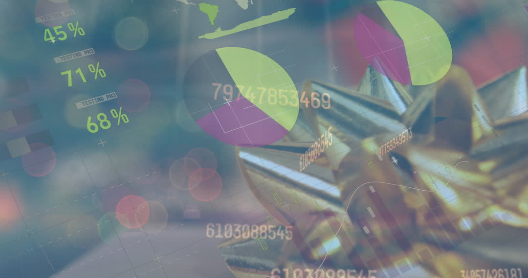 Overlay of digital graphs and data charts with Christmas ornaments illustrates a blend of technology and festivity. This visual is ideal for marketing campaigns, festive finance promotions or tech products being launched during the holiday season. It represents innovative business approaches in a celebratory context.