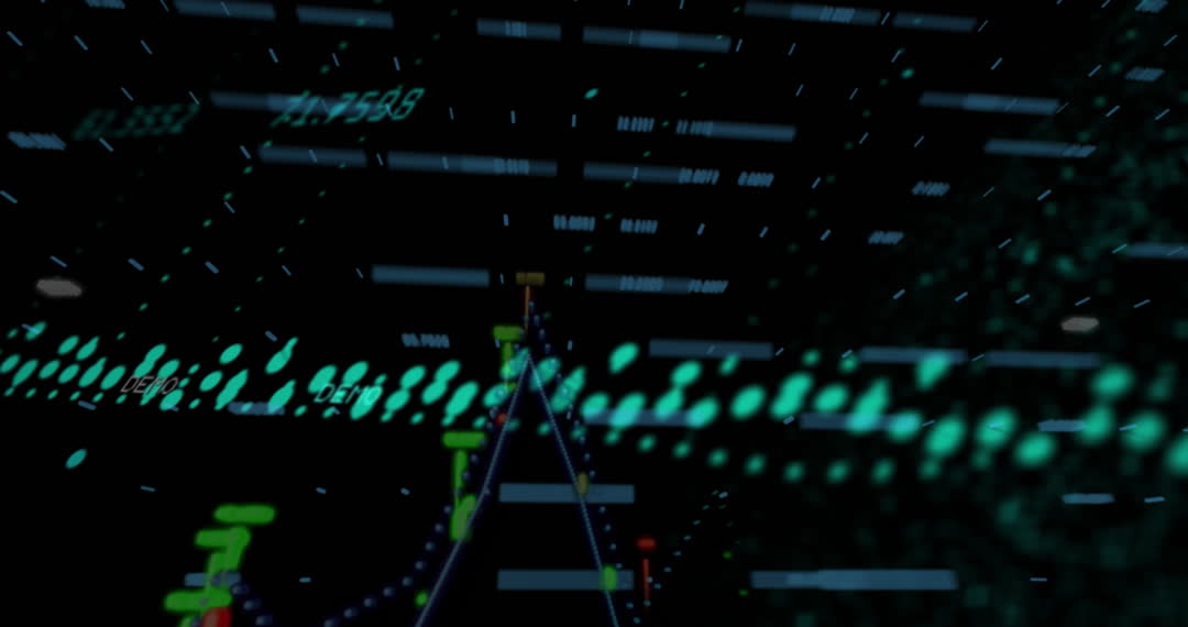 Visual representation of data processing where futuristic elements and dynamic charts stand out against a dark background, emphasizing technology transformation. Suitable for illustrating concepts in digital technology, data visualization, and modern computing systems. Beneficial for tech presentations, software development pitches, or educational videos on data science.