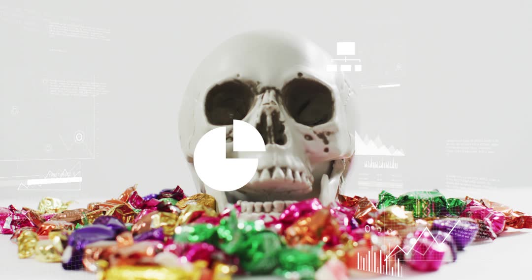 Futuristic Data Visualization on Skull with Colorful Candy Video