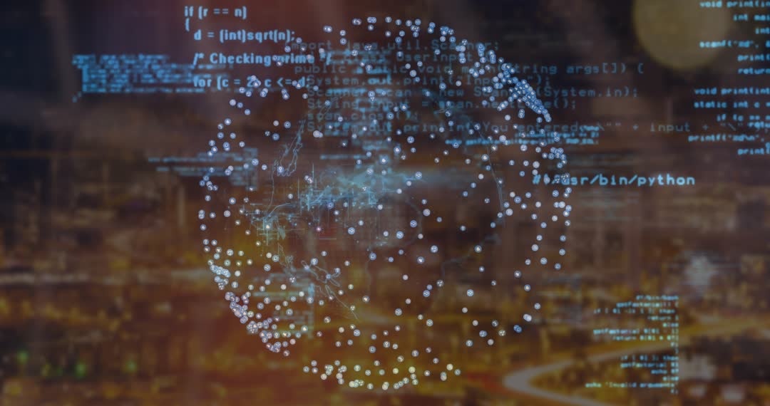 Sphere of code snippets rotating over city backdrop symbolizes connection between urban environments and digital advancements. Ideal for depicting innovative technology, artificial intelligence, or smart cities. Suitable for tech conferences, smart city planning, or digital transformation projects. Display highly suggests concepts social modern data processing information analysis modernity.