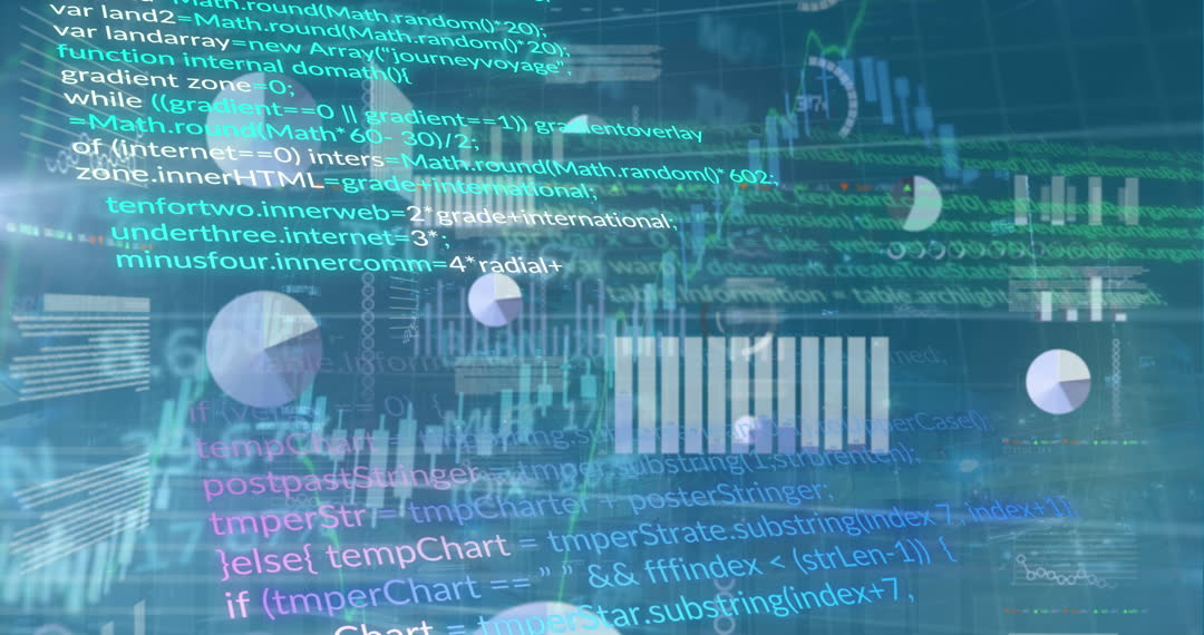 Dynamic representation of data with charts and programming code overlay, symbolizing comprehensive financial analysis and economy strategy. Ideal for illustrating breakthroughs in technology, explaining complex data concepts, or enhancing presentations related to data science and finance sector solutions.