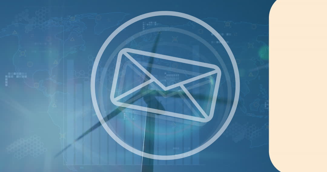 Overlay showing envelope graphic and wind turbine on data visualization conveys modern technology and innovation concept. Useful for technology presentations, digital marketing, promoting global science, or analyses featuring technological advancements.