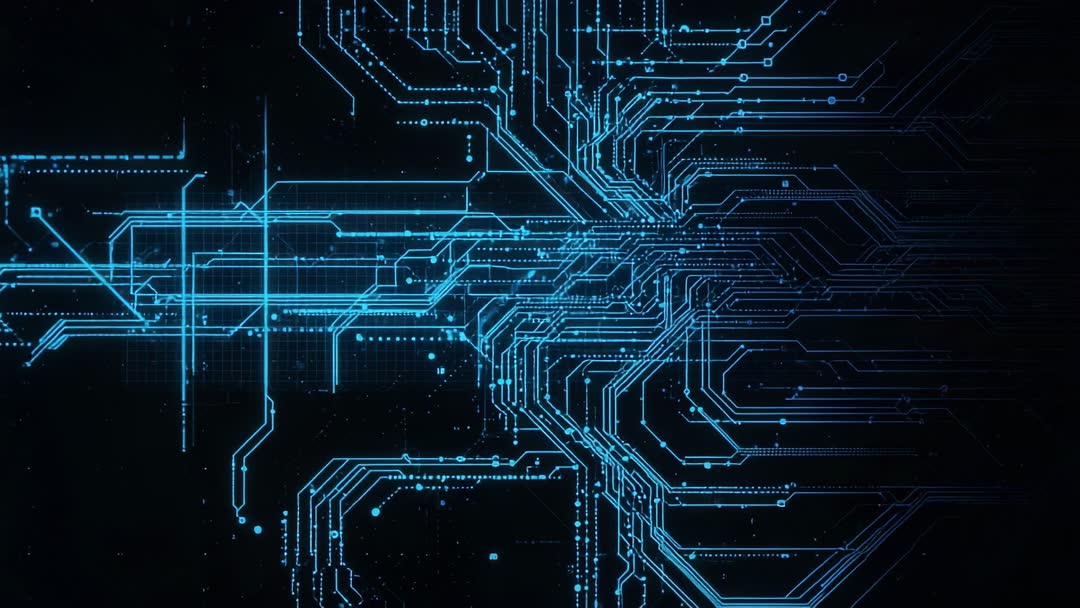 - Futuristic Digital Circuit Network with Blue Neon Design