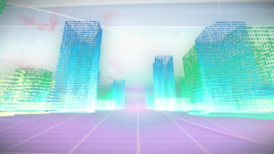 Futuristic Digital Cityscape with Abstract Data Networks Video
