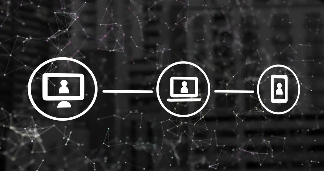 This visualization shows media icons of laptops and smartphones digitally interconnected over a cityscape, implying global communication and digital networking. Ideal for illustrating concepts of modern digital interactions, technology innovation, and futuristic city networks on websites, presentations, or articles about technological advancements.