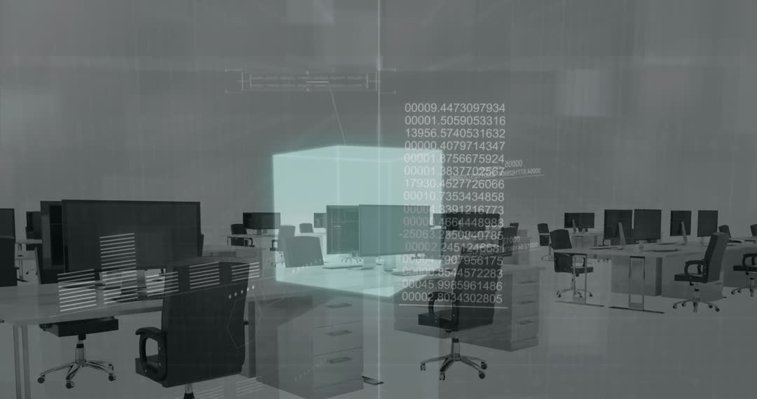 This visual juxtaposes cutting-edge digital tech with an empty modern office, offering insights into futuristic business environments. Ideal for illustrating themes around digital transformation, technological advancements, or virtual and augmented reality in articles, presentations, and marketing material activities focused on future office trends and tech innovations.