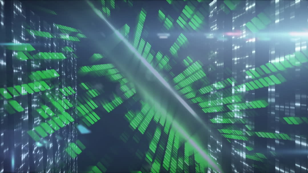 This digital animation features green lights rotating around a data processing concept, set in a navy blue space, creating a futuristic and dynamic visual. Ideal for use in technology-themed projects, sci-fi presentations, or marketing materials related to IT and data analysis. The vibrant green hues contrast with the dark backdrop, creating an eye-catching display perfect for digital interfaces and tech backgrounds.