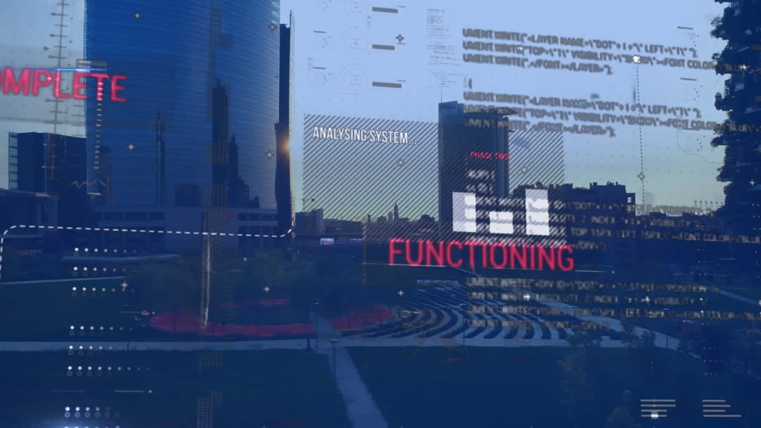 - Futuristic Digital Data Overlay Interactive Cityscape Scene