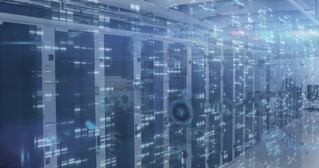 A cutting-edge visualization showing digital data overlays within a high-tech server room, representing concepts like global business, cybersecurity, and IT infrastructure. Ideal for use in tech industry promotions, digital innovation articles, and related marketing materials.