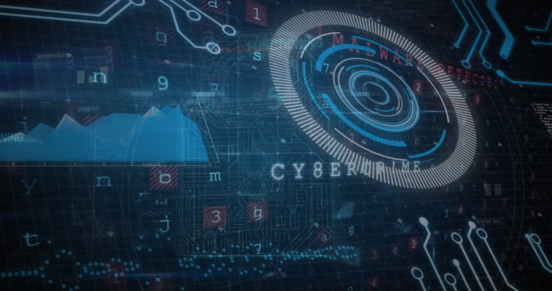 Animation presents a sophisticated digital interface depicting data processing elements, cybersecurity themes such as malware detection, and network visualization. Ideal for illustrating concepts around cybersecurity, technological advancements, IT infrastructure, and network security. Useful for presentations, training videos, or articles discussing innovation and protection in digital environments.