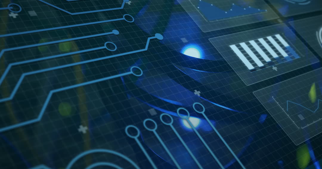 Animation focuses on dynamic graphs and circuit-like designs presented on sleek panels, representing advanced data processing and futuristic business finance solutions. Useful for illustrating concepts related to technology, big data analytics, digital transformation, or financial technology innovations.