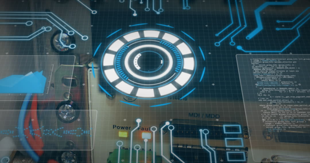 An animated scene details data communication and processing, involving various technological symbols overlaying a circuit board. Ideal for use in themes related to internet technology, data networks, software development, and innovation. The surreal design captures the essence of cutting-edge computer systems and can enhance presentations in the field of IT and telecommunications.