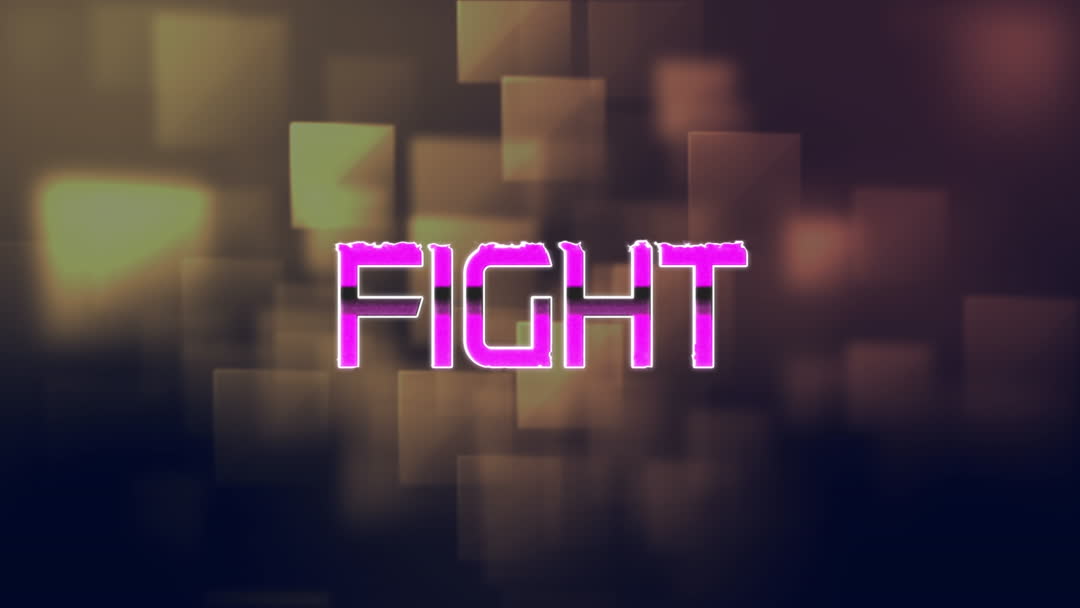 This graphic displays futuristic text 'FIGHT' over glowing square shapes, resembling a video game interface. It is ideal for use in projects involving gaming, entertainment software, and artificial intelligence themes. Perfect for digital backgrounds, tech presentations, or advertising gaming-related content.