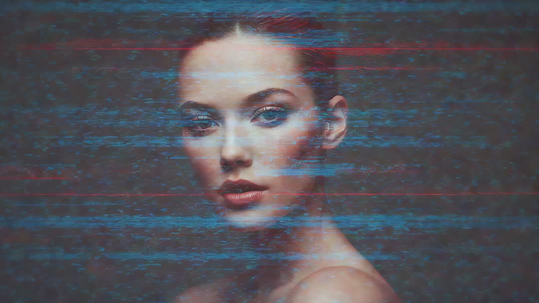 - Futuristic Digital Glitch Portrait of Model in Studio