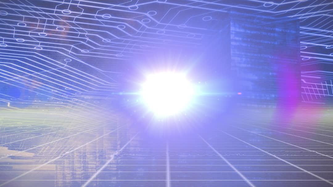 - Futuristic Digital Grid Network with Light Burst and Microchips