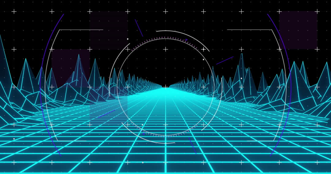 Illustration shows glowing digital grid landscape with dynamic scanning scope overlay, evoking futuristic tech themes for use in presentations, websites, or promotional materials related to technology, networking, global connectivity, or data infrastructure.