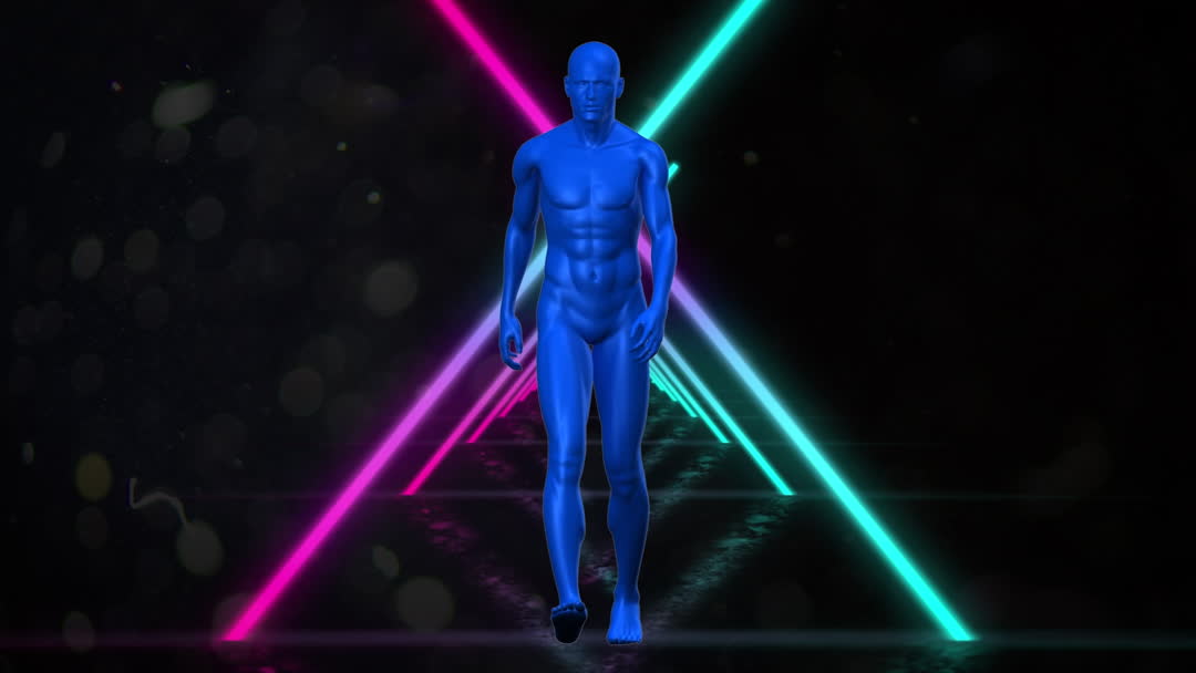 Futuristic Digital Human Walking with Neon Light Shapes Video