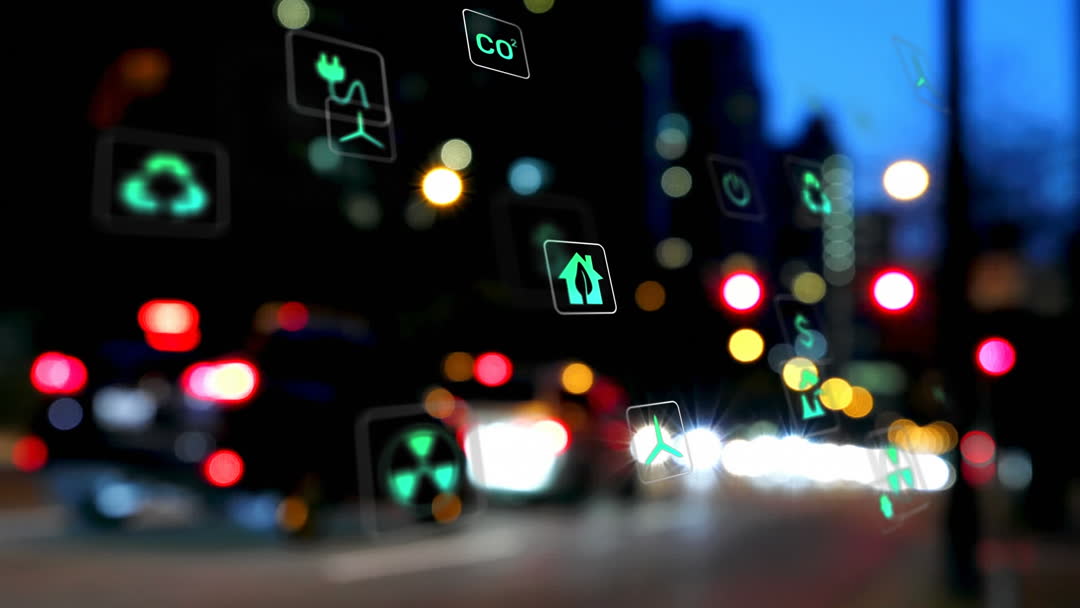 - Futuristic Digital Icons Overlay on Blurred City Traffic