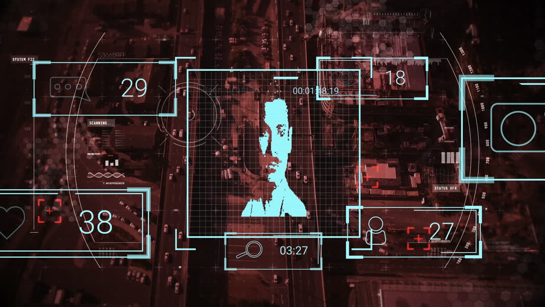 Futuristic Digital Interface Analyzing Urban Activity Video