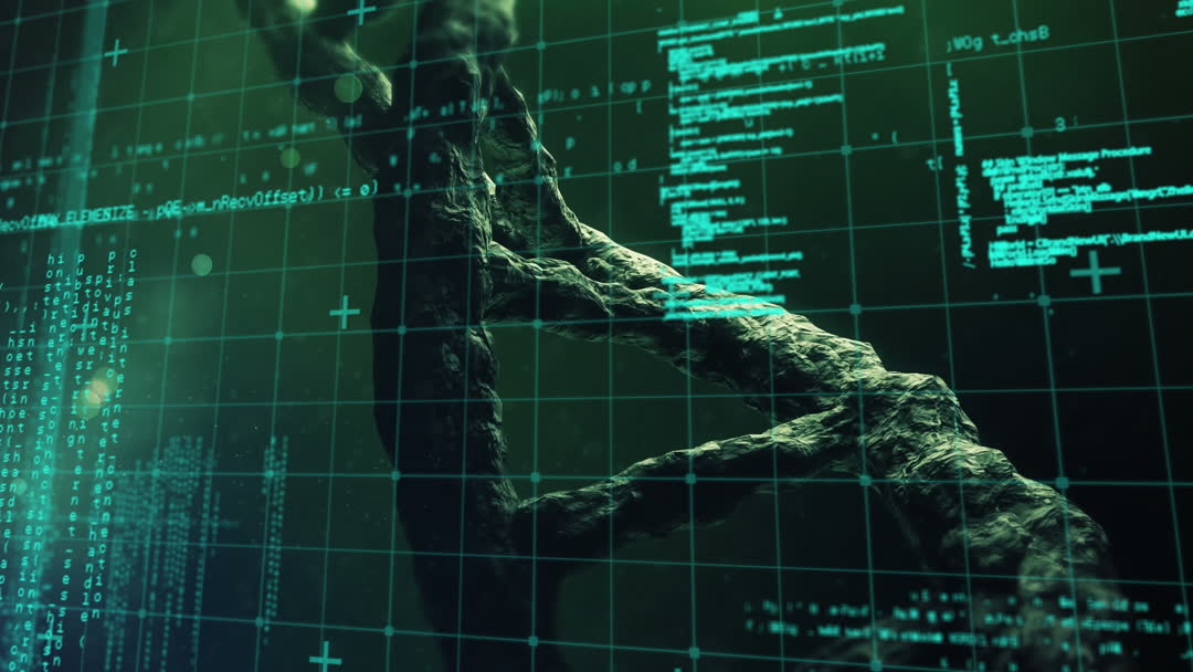 A visual representation of technological innovation depicting a spinning DNA strand against a digital interface complete with algorithmic codes. Ideal for illustrating biotechnology advancements, genetic research, or digital science themes. Useful for educational purposes, scientific publications, or tech presentations.