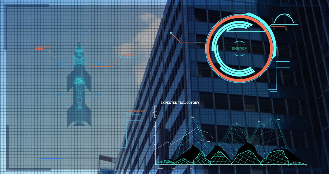 - Futuristic Digital Interface with Business Analytics on Skyscraper