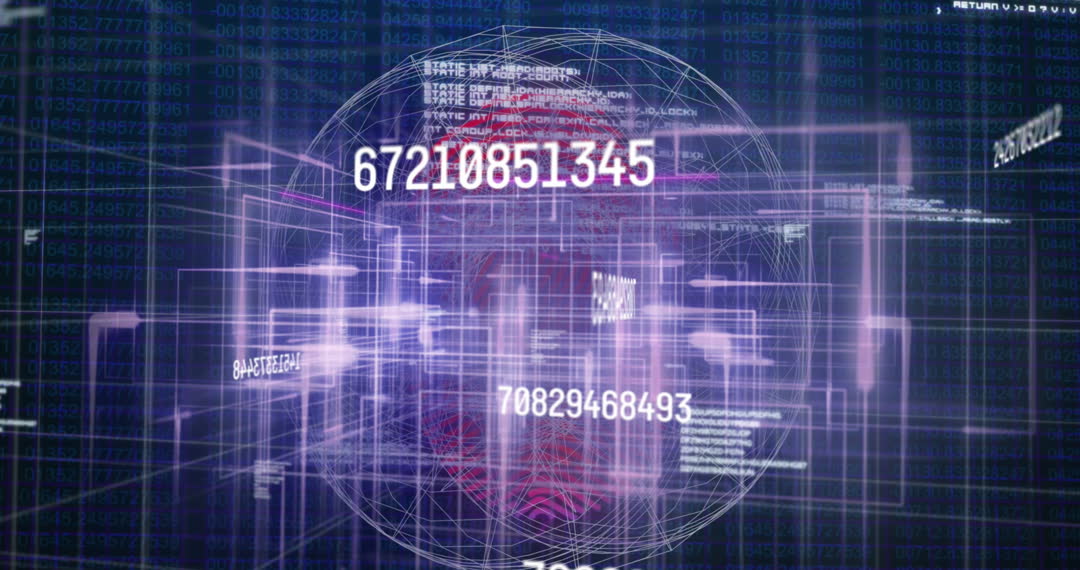Intricate digital space with holographic numbers and codes represents the fusion between data technology and global connectivity. Useful for visualizing concepts related to cybersecurity, innovative tech environments, or global networks in professional presentations and educational materials.
