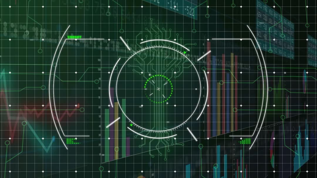 This dynamic visual explores modern technology through a blend of data visualization and circuit patterns on a HUD interface. Perfect for use in technology blogs, digital advertisements, or corporate presentations highlighting innovation and futuristic themes. The combination of bar charts and circuitry motifs symbolizes the precision and complexity achievable in contemporary tech environments.