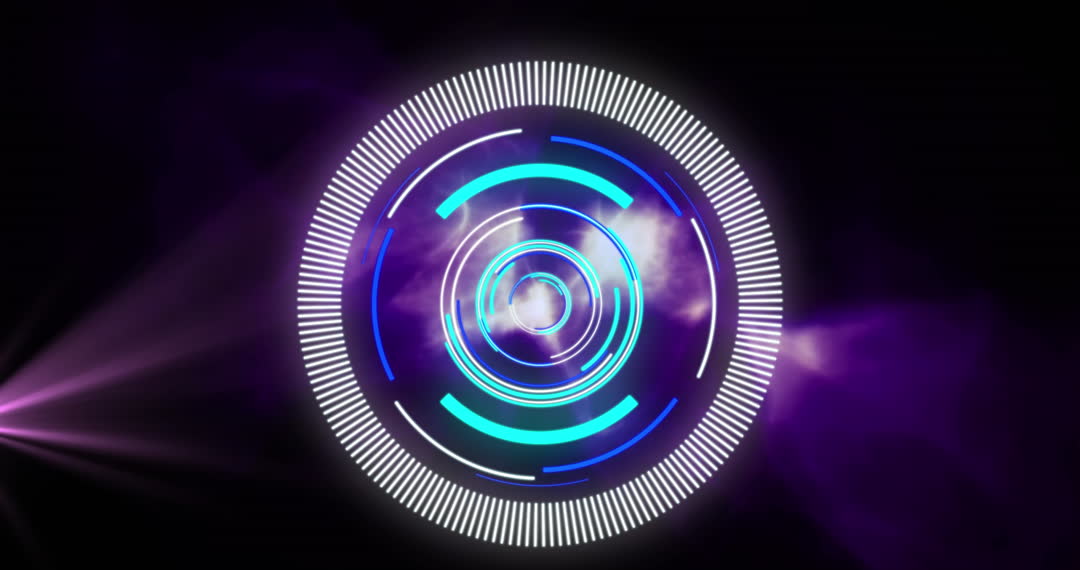 Dynamic graphic depicts a sci-fi inspired digital interface highlighted with glowing, rotating scope patterns. Shades of blue and purple enhance the futuristic aesthetics. Ideal for tech-related presentations, sci-fi movie credits, virtual reality environments, and innovative branding.