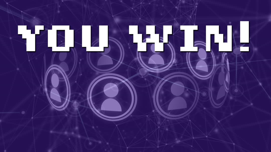 This illustration features a digital landscape with prominent 'You Win' text overlay, set against a backdrop of network connections and abstract pattern symbolism. Useful for gaming, motivational, and tech-related content, this can enhance campaigns focusing on technology, cybersecurity, or competitive gaming environments. Its striking blue theme makes it ideal for themes centered around future innovation and online achievements.