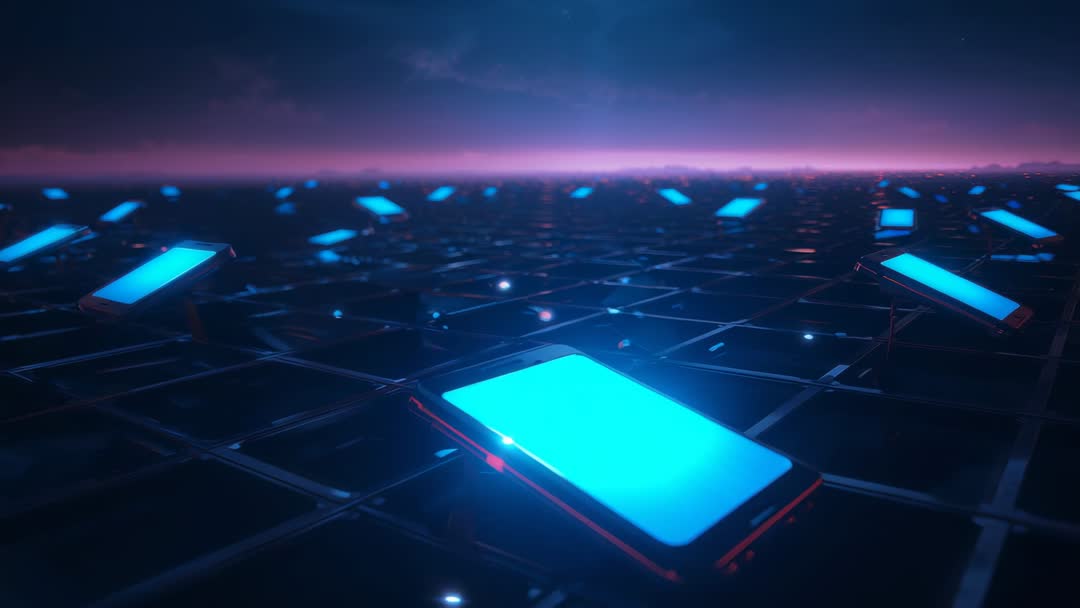 <a target="_blank" href=https://pikwizard.com/video/futuristic-digital-landscape-of-glowing-smartphones-on-tech-grid/d48ecc7037539071d38c64f0766849b3/>PikWizard</a>