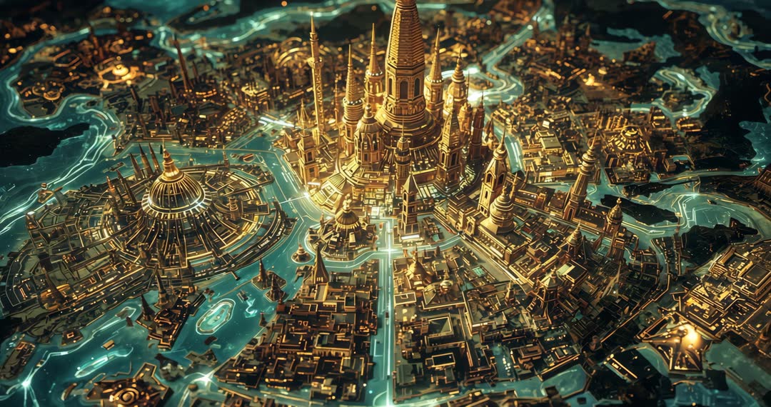 - Futuristic Digital Metropolis with Glowing Canals at Night