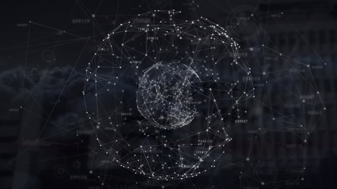 An intricate digital network is forming a spherical shape against a dark backdrop, illustrating themes of global communications, internet connectivity, and digital innovations. Perfect for presentations on technology and communication progress, backgrounds in tech-related publications, or slideshows addressing futuristic IT solutions.