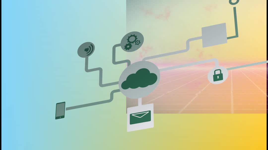Visualizes the integration of media and data systems connected through various technology icons such as cloud storage, security, and communication tools. Useful for presentations or marketing campaigns focused on technology, digital transformation, or internet of things solutions.