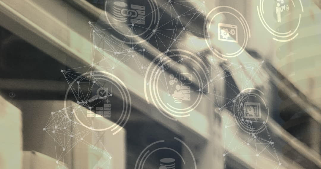 Visual representation of a digital network featuring technology icons overlaying a blurred background, symbolizing global business and digital interfaces. Ideal for concepts related to connectivity, modern technology, networking, and communication strategies.