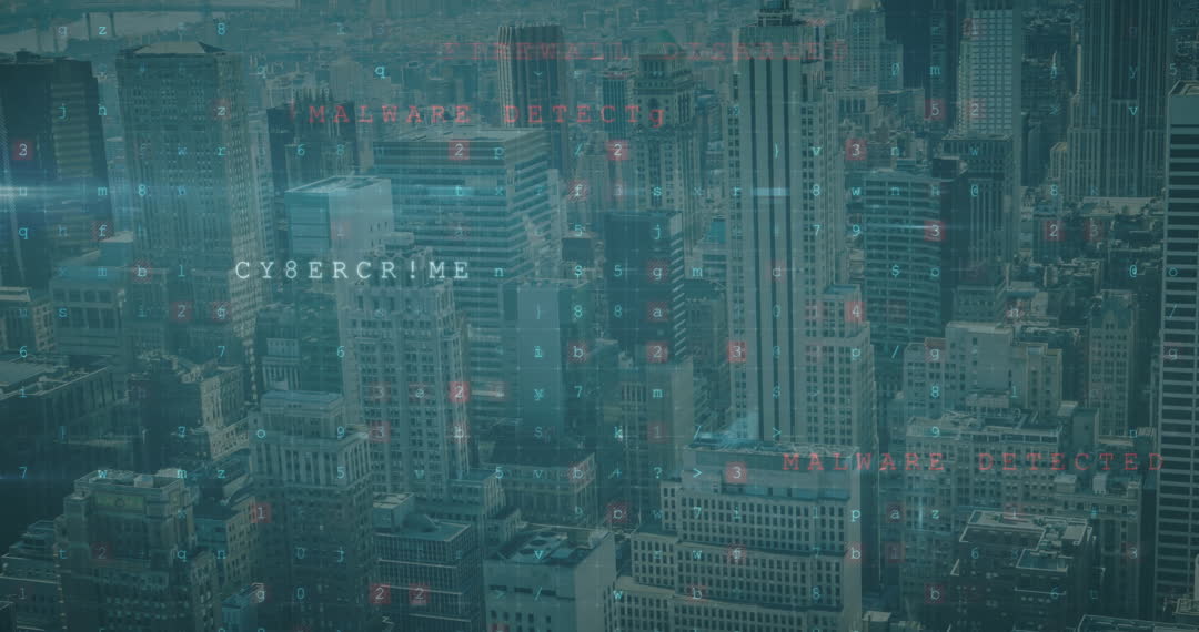 This digital representation overlaid on a cityscape explores themes of global cybersecurity and data processing. Ideal for illustrating articles, presentations, or campaigns related to digital security, identity protection, cybercrime prevention, and advancements in technology.