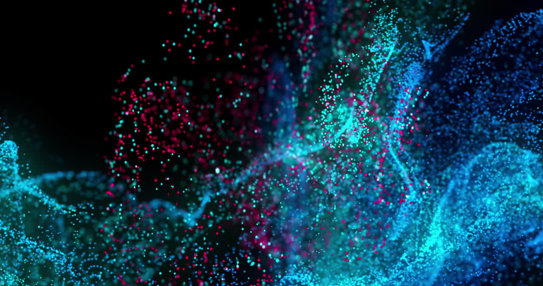 Vibrant animated particles create flowing, elegant waves on a black background. This futuristic abstraction is ideal for concepts involving technology, data visualizations, and digital innovations. Perfect for backgrounds related to technology interfaces, presentations on connections and networks, or modern ads highlighting advanced systems.
