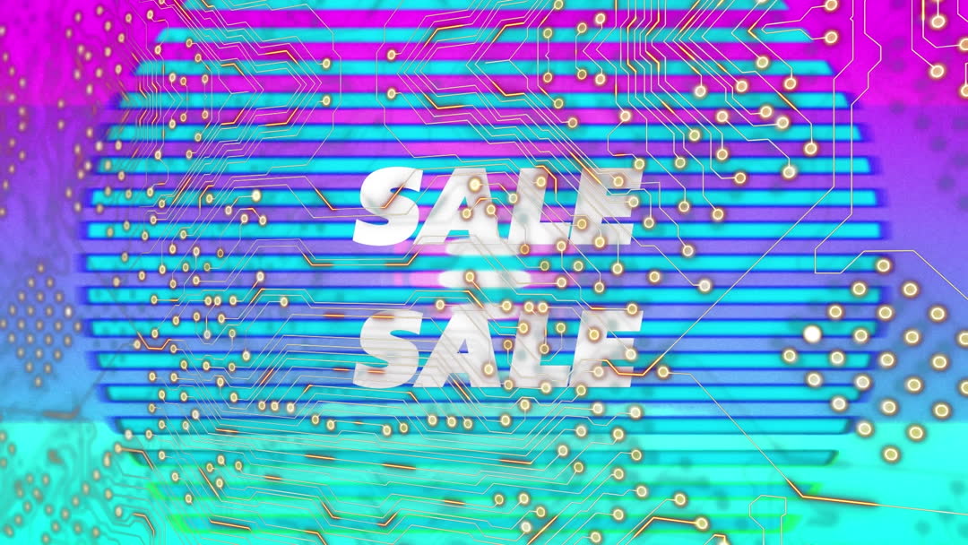 Dynamic visual featuring 'SALE' text combined with digital circuit elements. Perfect for advertising seasonal discounts and product promotions online and highlighting tech and electronic marketplaces.