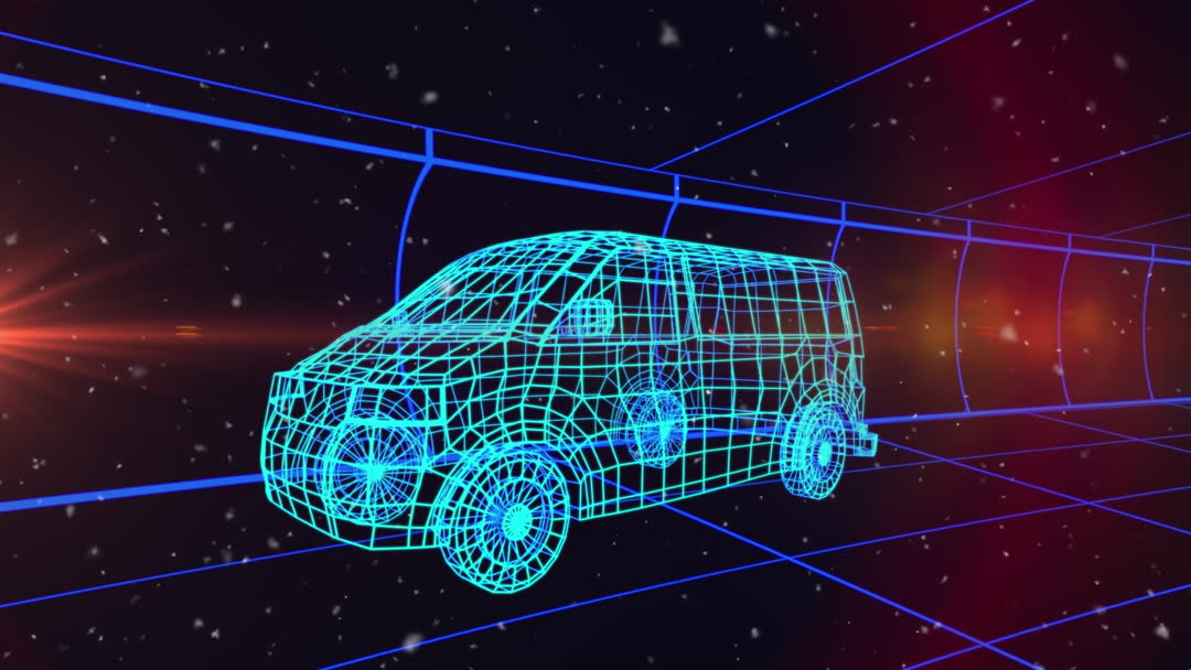 - Futuristic Digital Wireframe Van Concept in Virtual Space