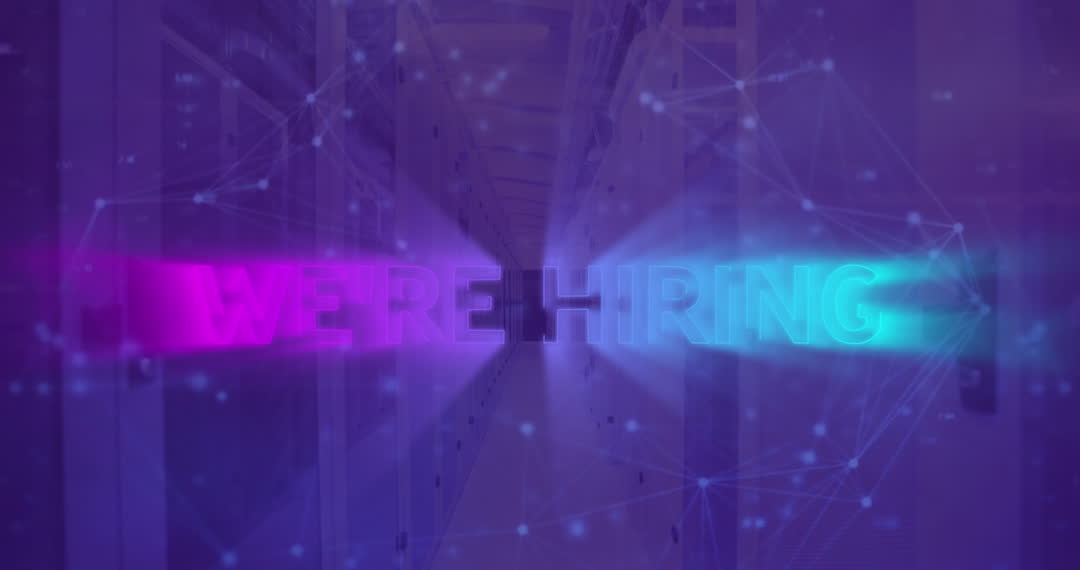 Creative visualization of modern business environment utilizing technology. Perfect for illustrating topics related to corporate recruitment, digital transformation, and online networking. Useful in presentations and marketing for job recruitment drives and technology innovations.